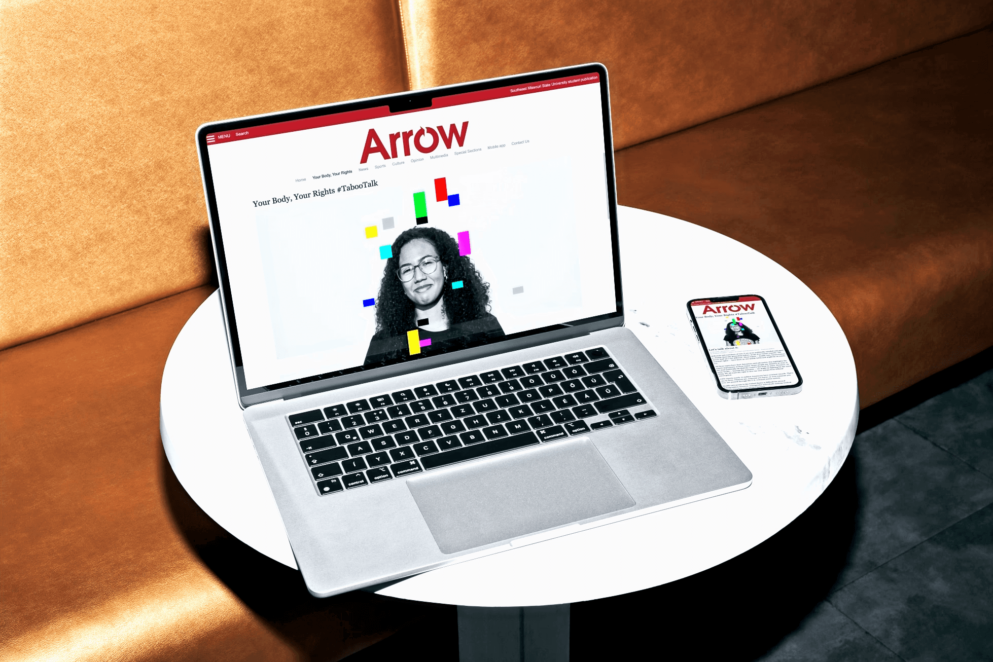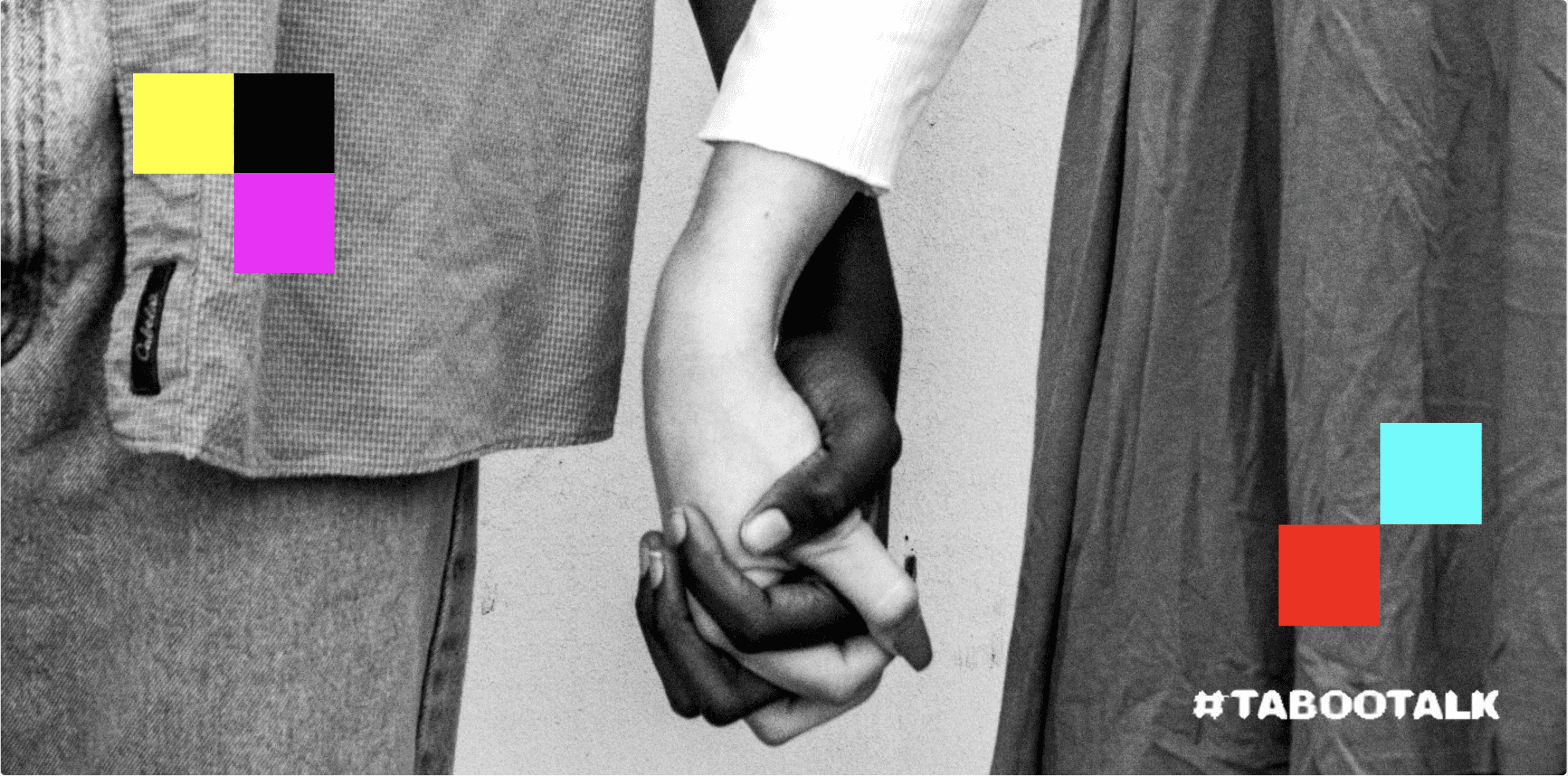 The "Taboo Talk" branding referenced colorful broadcast error screens when a signal gets cut or censored. I paired this glitch aesthetic with portraits of real students to create a visual statement: these are stories that get blocked out, conversations that get interrupted.