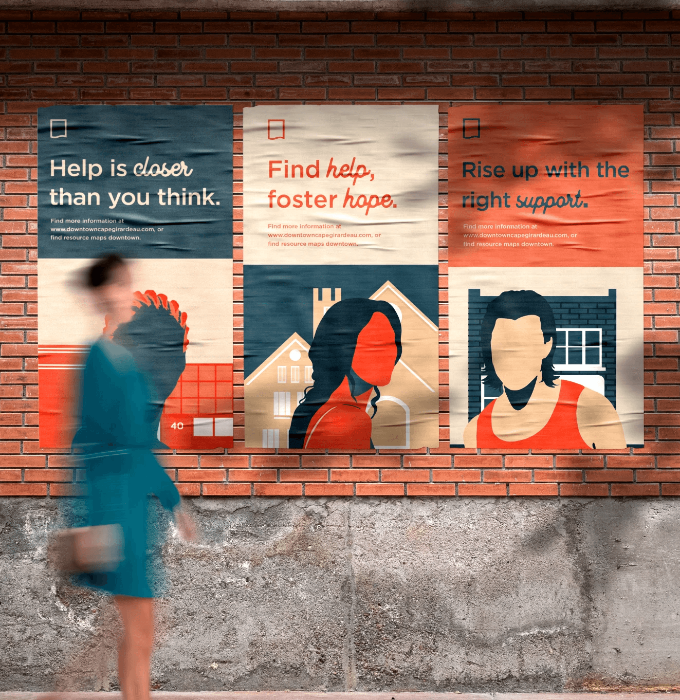 The campaign launched with posters placed in kiosks throughout downtown, targeting areas frequented by the community. The accessible design connected individuals with vital resources and raised awareness about available support.